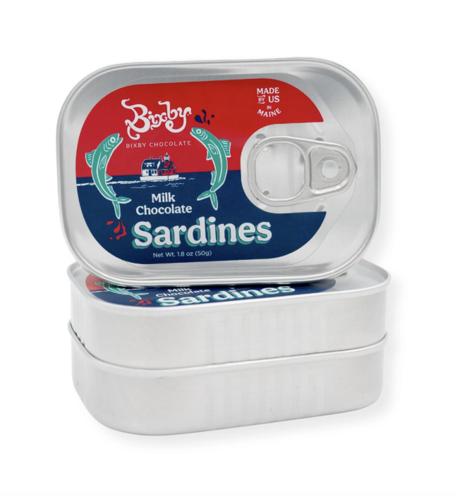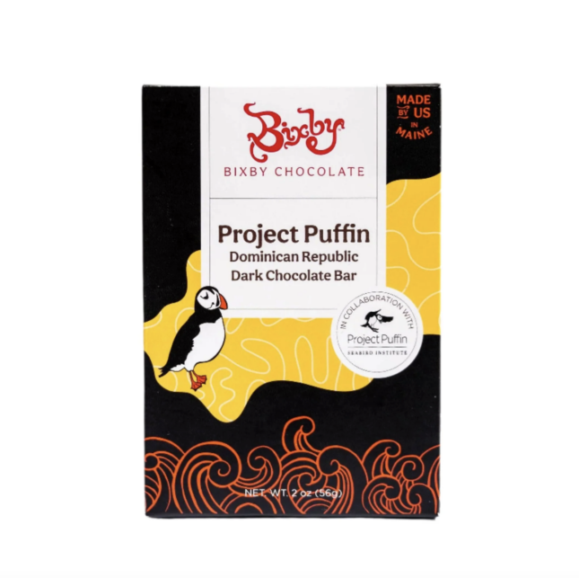 If this were a video, I would now say drumroll – here are the yummy chocolate flavors we are carrying here at the store: Dark and Milk Chocolate Sardines (check out the photos – these are actually packaged in sardine tins!), Whippersnapper Snack Bar (vegan dark chocolate with Maine blueberries and Maine sea salt), Heart’s Delight Snack Bar (also vegan with dark chocolate, almonds, strawberries and cinnamon), Nutty for You Snack Bar (dark chocolate, crunchy peanut butter and Maine sea salt), and Organic Project Puffin 70% dark chocolate bars (a portion of all sales supports Project Puffin’s seabird conservation work through the National Audubon Society!) Yep, this chocolate not only tastes good, it does good!