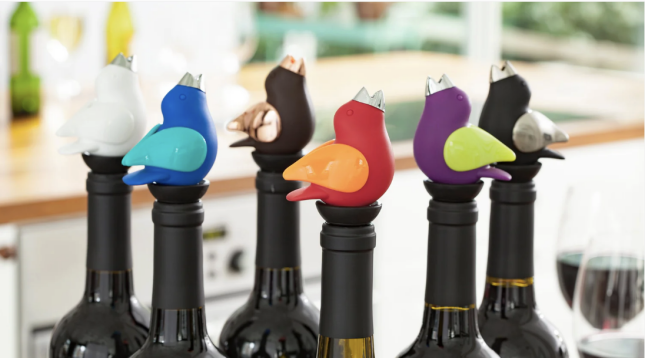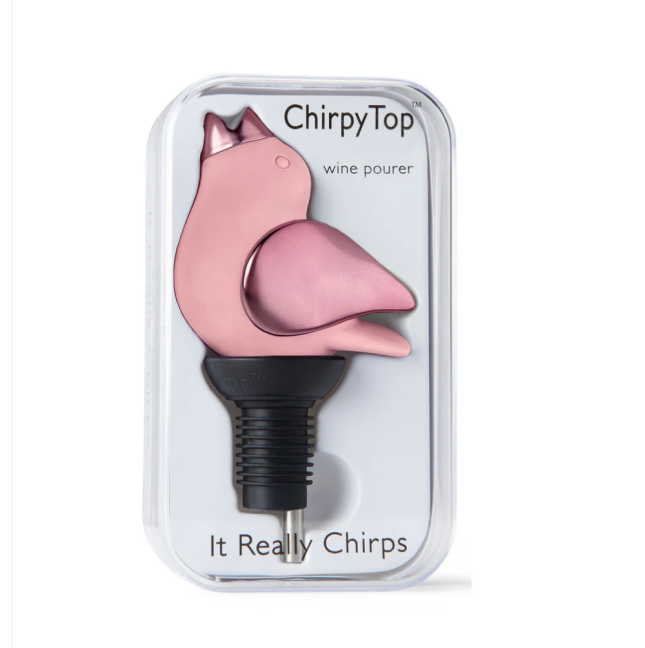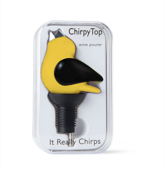 These Chirpy Top wine pourers are awesome and they are so fitting for our store and bird-loving customers! These colorful bird-shaped wine pourers make a chirping sound when wine is poured! We have carried them in the store in the past and they have always been extremely popular – can you imagine a better hostess gift to present with a bottle of wine? There are lots of holidays coming up, so if you get an invite to a Halloween party, Thanksgiving, Hanukkah, Christmas, or my birthday (hehe, kidding – or not!), consider livening things up with a Chirpy Top wine pourer!